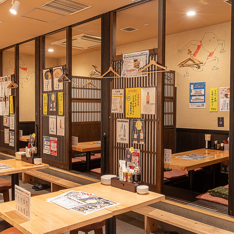 一人飲みにおすすめのカウンター席から、仲間と語り合えるテーブル席、そして宴会に最適な広々とした座敷席まで、様々なタイプの席をご用意しています。特に足を伸ばしてくつろげる座敷席は、長時間でも快適に過ごせると好評!カジュアルながらも、利用シーンに合わせて席を選べる使い勝手の良さも魅力です。