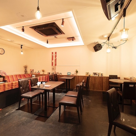 広々とした明るい店内。ごゆっくりとお寛ぎいただけるアットホームな雰囲気。お席には電源も完備しておりますのでビジネスシーンや充電をしながらリラックスすることも可能です。お1人様から各種宴会まで幅広くご利用ください♪