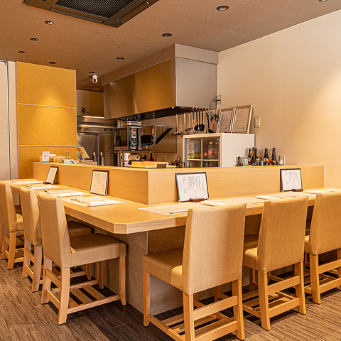 ゆったりとしたカウンター席を8席ご用意しております。和を基調とした店内は、大人の静かなおばんざい店として、高級感と落ち着きを兼ね備えています。ゆったりと流れる時間の中で、旬のおばんざいと厳選されたお酒をお楽しみいただけます。お一人様でも気兼ねなく、心安らぐひとときをお過ごしください。