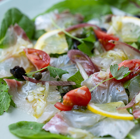 漁港から直送の新鮮な真鯛を使用したカルパッチョと、絶妙なレア加減のマグロのレアステーキ。真鯛やブリなど、選び抜かれた海の幸が織りなす美味しさを堪能できます。鮮魚料理の真髄を感じる一皿をぜひお楽しみください。