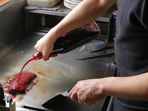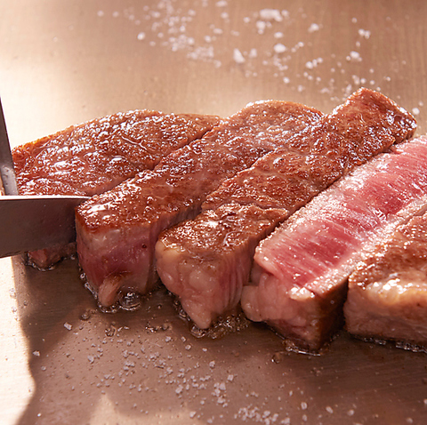 鉄板で焼き上げステーキをお楽しみいただけます。旨みたっぷりの肉汁を閉じ込めたお肉をお楽しみください!