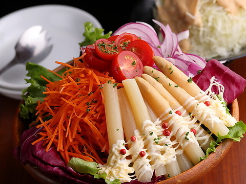 GRALICのサラダを求めて来る人がいるほど人気のサラダ!その秘密は、ガーリック香るクリームソース。試行錯誤の末に生み出した奇跡のガーリックドレッシングが、食材の旨味を引き立てます。お肉との相性も抜群で、リピート必至の一品です。ぜひご賞味くださいませ!