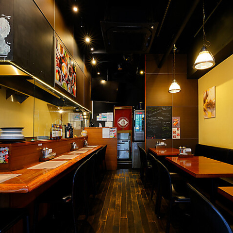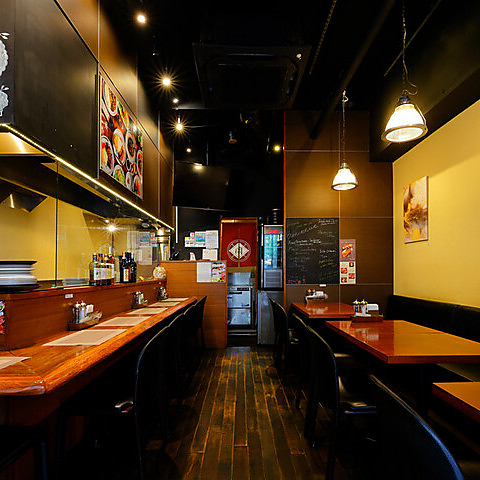 活気あるオープンキッチンを目の前に望むカウンター席は、全6席ご用意しております。職人の調理風景を間近で感じながら、出来立てのステーキやハンバーグをご堪能いただけます。お一人様やデート、お仕事帰りのサク飲みにも最適です♪