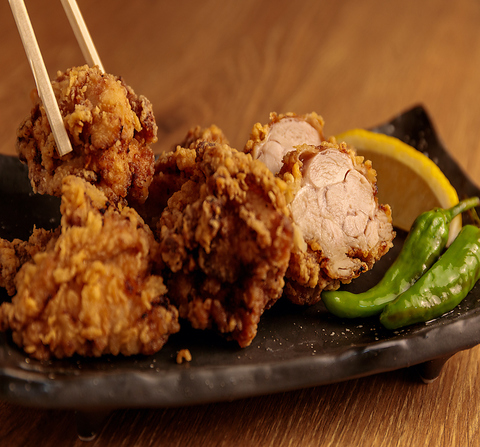 自家製の王道醤油唐揚げと柚子胡椒の2種類の味付けを楽しめます♪相盛りも可能ですのでぜひお楽しみください!