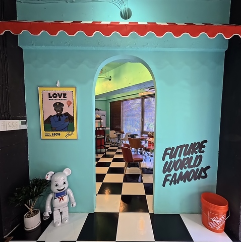 ポップでカラフルな内装が目を引く店内は、まるで70~80年代のアメリカにタイムスリップしたかのようなレトロな空間が魅力!インテリアにもこだわり、お洒落なゆったり座れるテーブル席をご用意♪仲間とのワイワイとしたご宴会や女子会、ご家族での和やかなお食事まで、様々なシーンでご利用いただけます。