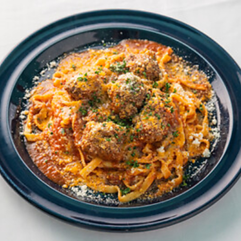 まさにアメリカの家庭で愛される、あのボリューム感をそのまま再現しました。太麺のパスタに、ゴロゴロと乗った特大サイズのジューシーなミートボール。一口食べれば、肉汁がじゅわ~っと溢れ出し、濃厚なソースと絡み合います。食べ応えも満足感も、アメリカンスタイルのスパゲッティをご堪能ください。