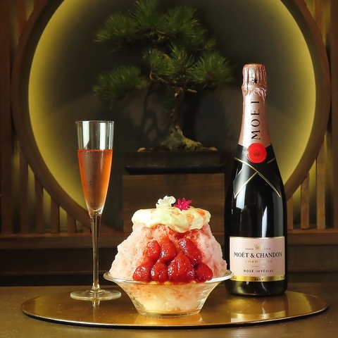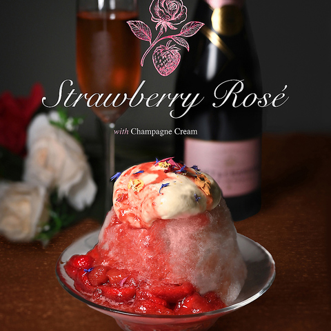 MOET & CHANDON社のロゼを使ったクリームや、マリアージュフレールの紅茶を贅沢に使用したシロップなど拘りのレシピを富士山天然氷を使用したかき氷でご提供します。ふんわりやわらかに削りあげた雪のような氷と、贅沢に使用したフルーツや様々なお酒、スパイスを生かした繊細で複雑な味覚をお楽しみいただけます。