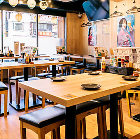 温かみのある照明と、ポスターや提灯が飾られた明るく活気のある空間です!会社の同僚との飲み会やご友人とのお集まりなど、様々なシーンでご利用いただけます。昼飲みも大歓迎◎全席喫煙可能なので、喫煙者の方も周りを気にせず安心してお過ごしいただけます。
