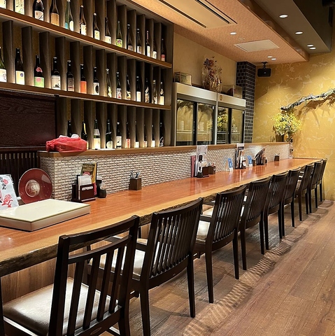 【カウンター席】お1人様からご利用頂けるお席となります。こちらはカップルシートとしてもご利用頂けますのでデート利用にも最適◎落ち着いた空間と上質なお料理を堪能頂ける特等席となります。お早目のご予約をお待ちしております。