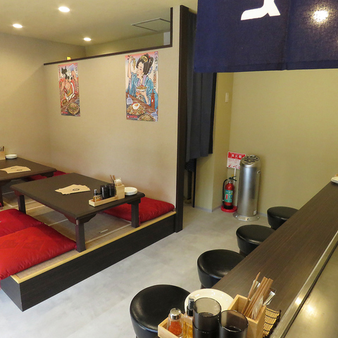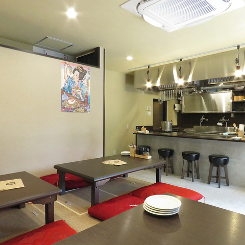 お座敷席は、足を伸ばしてくつろげる広々とした空間です。4名様がゆったりと座れるお席を3つご用意しており、ご家族でのお食事や気兼ねない友人との飲み会に最適です。お席の結合も可能ですので、大人数でのお集まりにもご利用いただけます。温かみあふれるアットホームな空間で、心ゆくまでおくつろぎください。