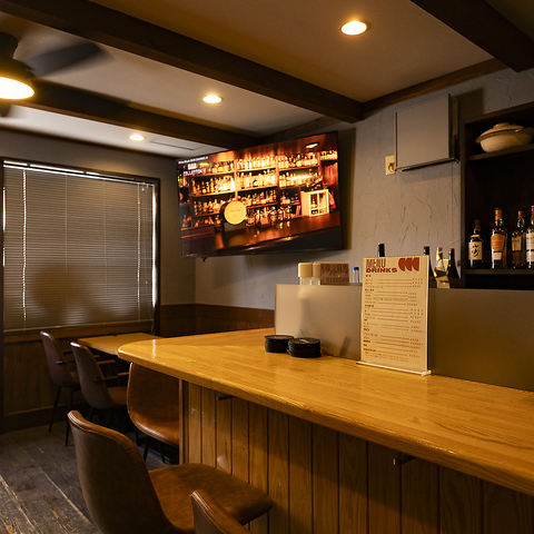 カフェをリノベーションしたおしゃれな内装の店内。日常のさまざまな場面で気軽にご利用いただけます◎ゆったり過ごす大人のデートにぴったりのカウンター席や、ご友人とのカジュアルな飲みの席として使いやすいテーブル席を完備。皆様のご来店をお待ちしております◎