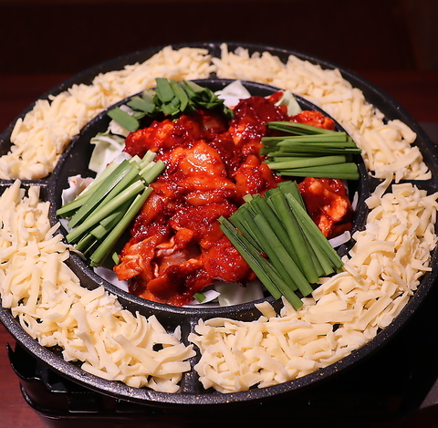 外はカリッと、中はジューシーに揚げたフライドチキンに、甘辛い特製コチュジャンソースをたっぷりからめた韓国の定番チキンです。甘さの中にピリッとした辛さがあり、一度食べたらやみつきになる美味しさ!ビールとの相性も抜群です!辛さの調も可能です。大人にもお子様にも人気のメニューです。サクサク衣と濃厚ソースのバランスが絶妙!韓国屋台の味をそのままに。