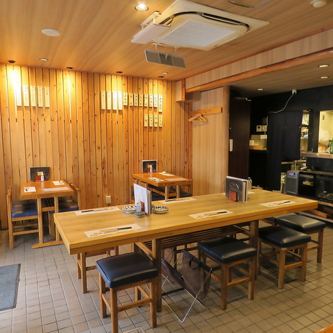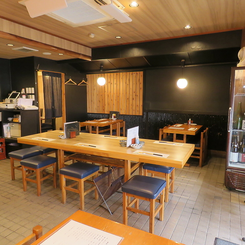 和の雰囲気が漂う落ち着いた店内に、4名様用のテーブル席や2名様から8名様までご利用可能な長テーブルをご用意しております。お客様同士の距離感が心地よく、活気がありながらも騒がしすぎない、和やかな空間です。お仕事仲間やご友人との気軽なお食事に最適です◎ぜひお気軽にご来店くださいませ!