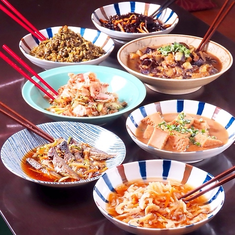 手づくりのおばんざいが並ぶ店内は、アットホームで心地よい雰囲気。