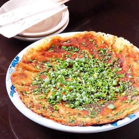 薄く焼いた生地に鰹節粉と青ネギをおしょう油で味付け。お酒のアテにぴったり◎※写真はイメージです。