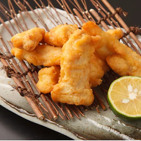 お店の看板メニューは、大分名物の別府とり天。カラッと揚がった衣と、ふっくらジューシーな鶏肉のバランスが絶妙です。からしポン酢でさっぱりと楽しめる一品で、ごはんにもお酒にもよく合います。初めての方にはぜひ食べていただきたい人気メニューです。※写真はイメージです。