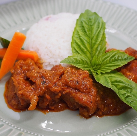 じっくり煮込んだ鶏肉のスパイシーカレーに、温野菜を添えた一品。ミャンマーの伝統的な風味を日本の季節感とともにお楽しみいただけます♪