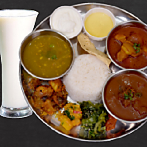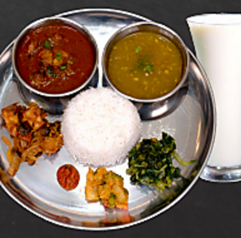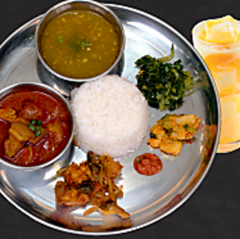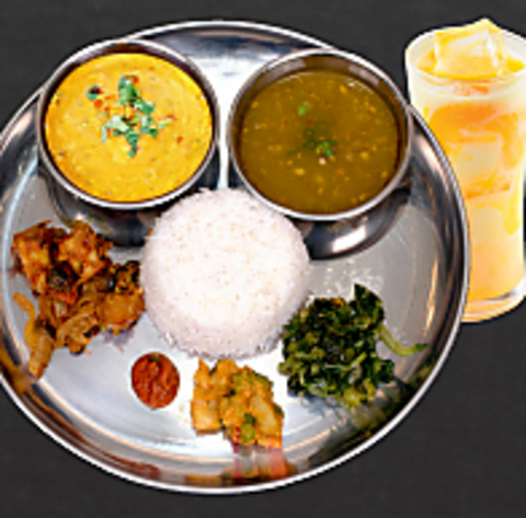 ライス/ダル/タルカリ/アチャール/サグ/ギー/ヨーグルト/ソフトドリンク/グンドルク・アチャール
