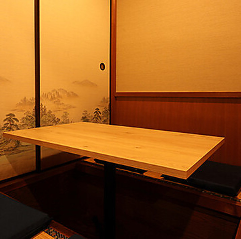 【最大10名様の個室もご用意!】木の温もりを感じるテーブルと落ち着いた照明が心地よい個室空間。周りを気にせずゆったり過ごせるので、会社の宴会や友人との打ち上げにもぴったり。カジュアルながら和モダンでおしゃれな雰囲気は、会話も自然に盛り上がり、気の合う仲間との特別な時間を演出します♪
