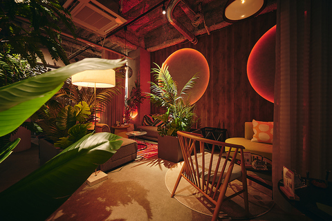 店内分雰囲気♪植物・オレンジの間接照明に囲まれたお席です!癒しの空間でシーシャ体験はいかがですか。