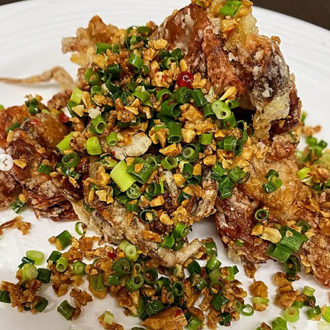 泰平飯店が自信を持ってお届けする『鈴蘭コース』の目玉は、ソフトシェルクラブのガーリックの香り!新鮮なカニを揚げ、特製のガーリックソースで香ばしく炒めました。外はカリッと、中はジューシーな食感と、濃厚なカニの旨みが口いっぱいに広がる贅沢な逸品です。特別な日のお食事や接待、会食などにもぴったりのコースです♪