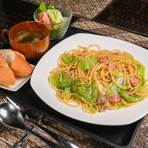 パスタは常時4種をご用意。オムライスや焼きそば定食など常時扱うメニューをはじめ、カツ丼・そば・うな丼・焼き魚・刺身…バリエーション豊かな日替わりランチを楽しめます。大きなかつ丼やロコモコなどガッツリメニューもございますので、腹ぺこさんも足をお運びください☆