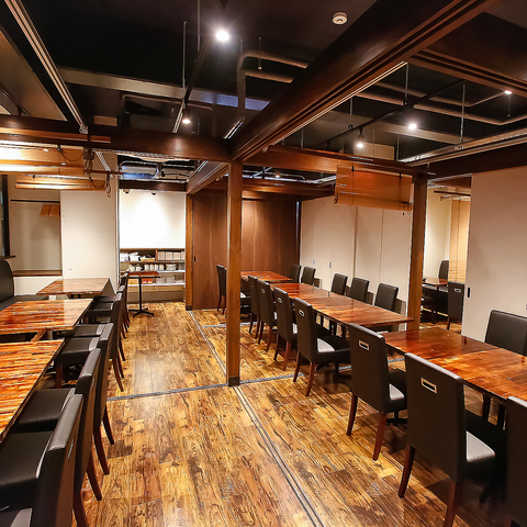 | テーブル | 4名様×5 | 【テーブル席】4名様席を自由に組み合わせて、多様な人数に対応できます。会社の同僚との飲み会や中規模の宴会など、様々なシーンにご利用ください。美味しい料理と会話で盛り上がること間違いなしです! |