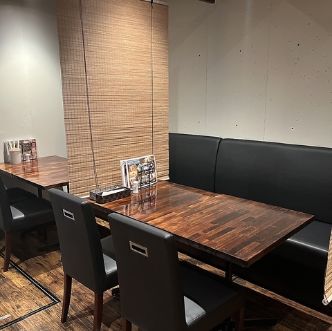 【カップルシート】デートや記念日など、特別な日のお食事にも対応いたします。落ち着いた照明とテーブルの配置で、二人のプライベートな時間を大切に演出します。