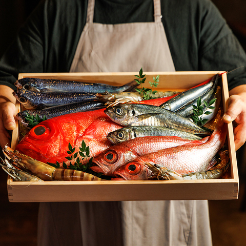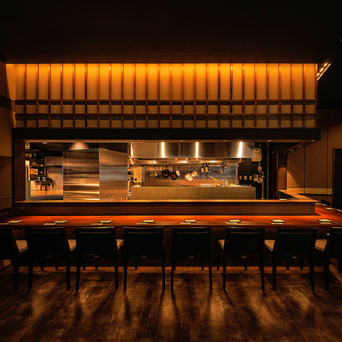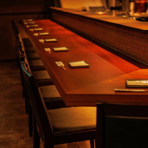旬の海鮮をまるごと炭火で調理します。素材の力を炭火焼で生かします、ぜひお楽しみください。また、カウンターでは魚が焼きあがっていくその雰囲気も楽しんでいただけます。落ち着いた温もりのある空間で、素敵なひと時をお過ごしください。