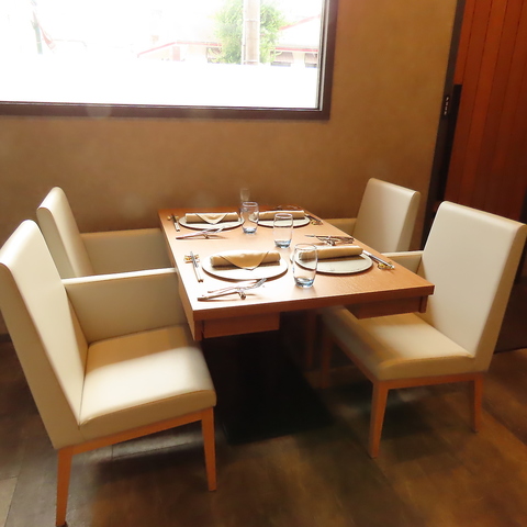 4名掛けのテーブル席は、友人との会食や記念日のお祝いに最適。ゆったりとした大人の空間で、会話も弾む上質な時間をお約束します。完全予約制のため、安心して特別な一日をお過ごしください♪