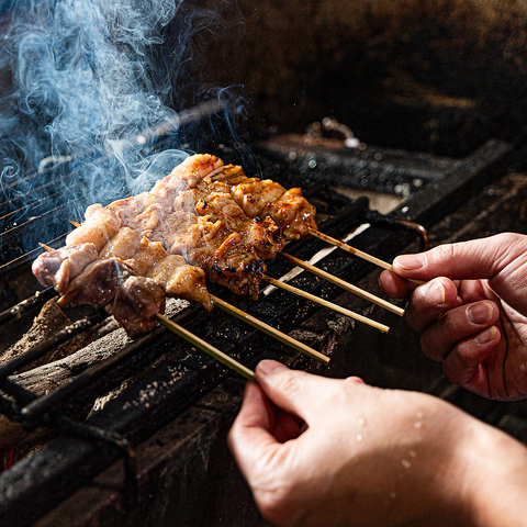 紀州備長炭を使用してじっくりと焼き上げたこだわりの炭火焼鳥♪外はカリッと、中はジューシーな逸品です♪