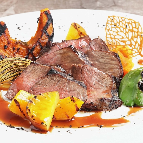 鮮度抜群の近江牛を贅沢にローストし、風味豊かな赤ワインソースと共に旬の野菜グリルを添えた一皿は、肉の旨味と野菜の甘みが絶妙に調和し、まさに至福のひとときを演出する、特別なディナーにぴったりのおすすめ料理です。