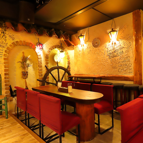 一歩足を踏み入れると、まるで本場のスペインのバルのような空間です◎壁には華やかなタイルが飾られ、テーブルを照らすこだわりのランプ、壁掛け時計が【異国情緒あふれる空間】を演出します♪飾られているインテリアにも、スペインの雰囲気を感じられれます♪広いテーブル席もございますので、心ゆくまでスペインの雰囲気をご満喫ください★