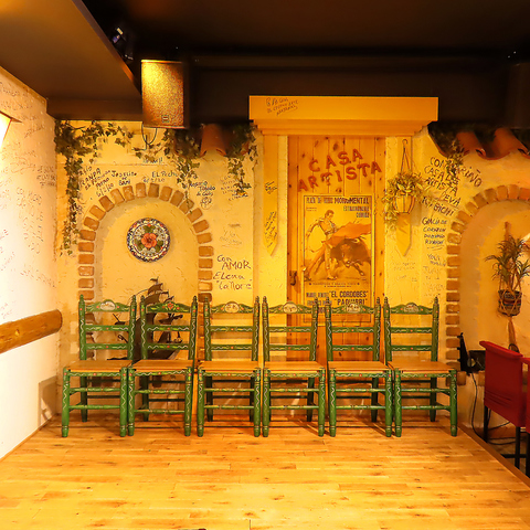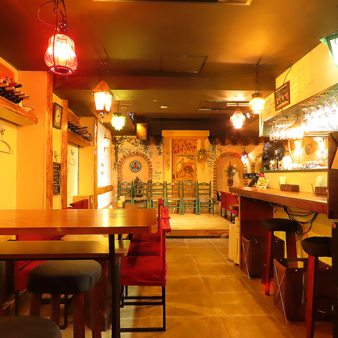 【温かい雰囲気が自慢◎】お1人様でも気軽に入れるカウンター席が2席あり、カップルでも大歓迎★店内は温かい照明で包まれ、アットホームな雰囲気が広がっています♪まるで本当にスペインにいるかのような、楽しい時間をお楽しみいただけます◎特別なひとときに、ぴったりの空間でお過ごしください!