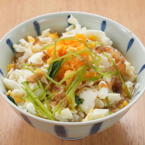 「山吹飯」は、江戸時代に多くの人々に愛された懐かしいお茶づけ。ふわふわのゆで卵がご飯の上で優しく溶け合い、心をほっこりさせる一皿です。お茶の香りが立ち上り食材の素朴さが際立つこの料理は、どこか懐かしい気持ちにさせてくれます。忙しい日常の中で、ほっと一息つける瞬間を演出する料理です。お楽しみください。