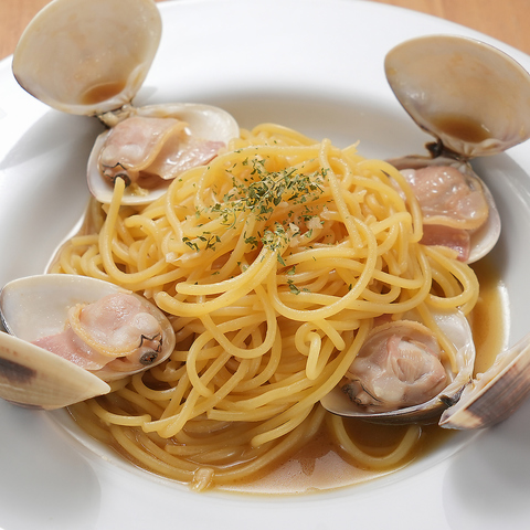 生パスタに大粒のハマグリを使い、贅沢に仕上げたバター醤油のスパゲッティ。