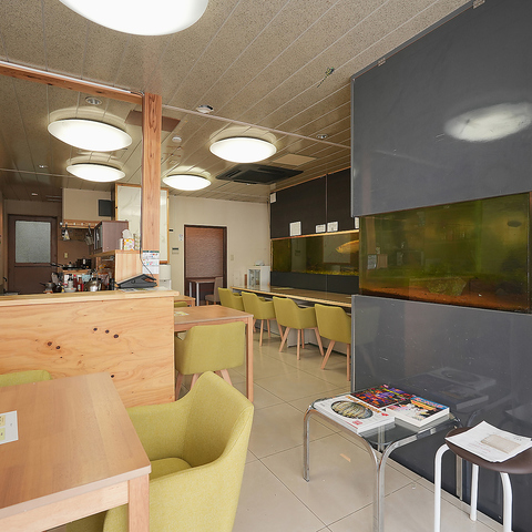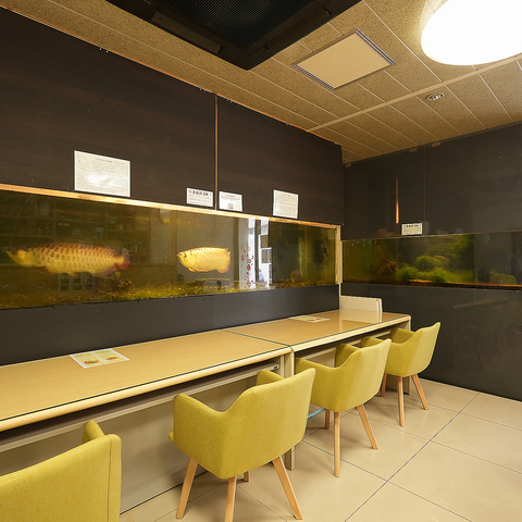 【珍しい体験!アジアロアナの魅力】店内の水槽には、アジアロアナのペアが優雅に泳いでいます。ペアで見ることができるのは非常に貴重で、訪れる価値があるスポットです。美しい色合いと流れるような動きは観る人に深い印象を残します。魚たちの魅力に心を奪われながら、特別なひとときを楽しんでみてはいかがでしょうか。