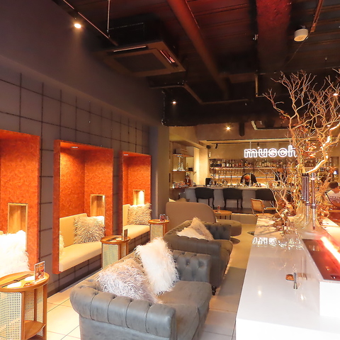 ダウンライトが織りなす幻想的な雰囲気の中で、ドリンクやシーシャを片手にゆったりとリラックス時間をお過ごし下さい。