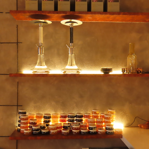 夜になるとダウンライトに照らされた店内は、より幻想的な雰囲気に変わります。ゆったりとした空間で日頃の疲れを癒し、大人な時間を満喫できます。豊富なアルコールメニューとリラックス効果のあるシーシャで、心身ともにリフレッシュできるでしょう。シーシャとお酒を楽しむバータイムにどうぞ◎