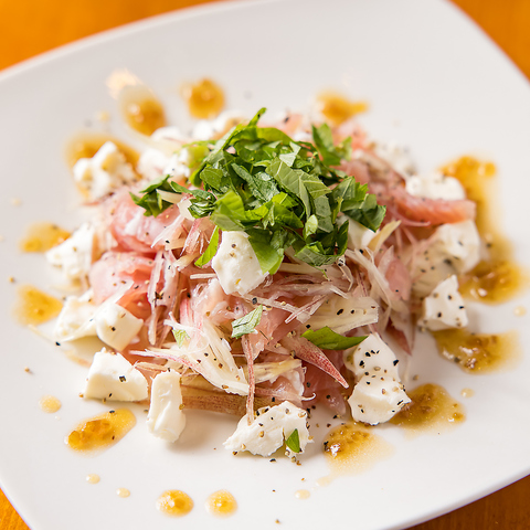 ミョウガと生ハム、クリームチーズの絶妙なハーモニー♪一度味わえばやみつきになること間違いなし!お酒との相性もバツグンです!是非一度お試しください。