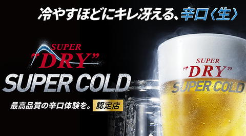 SUPER COLD認定店ではスーパードライの辛口を引き立てる"冷たさ”を実現するため、ビール温度を4℃未満で提供させていただいております。澄んだキレと冴えるのどごしで、一口目から爽快感が広がる定番の生ビールです。食事との相性も抜群、乾いた喉に心地よく染み渡ります。最高の瞬間を演出する一杯をどうぞ。