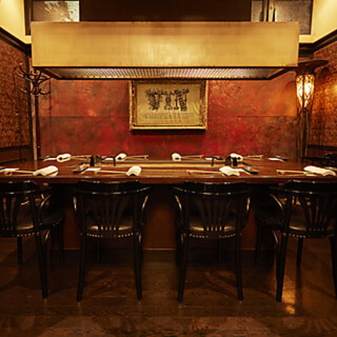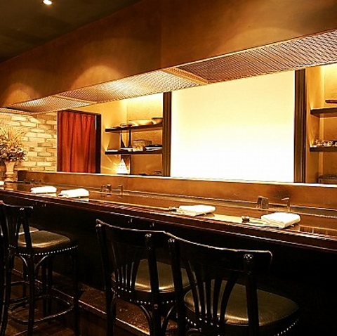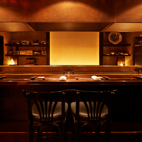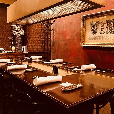 料理人の技を間近でご覧いただけるカウンター席です。目の前で調理される様子や、食材が焼ける音、香りを五感で感じながら、ライブ感あふれるお食事をお楽しみいただけます。