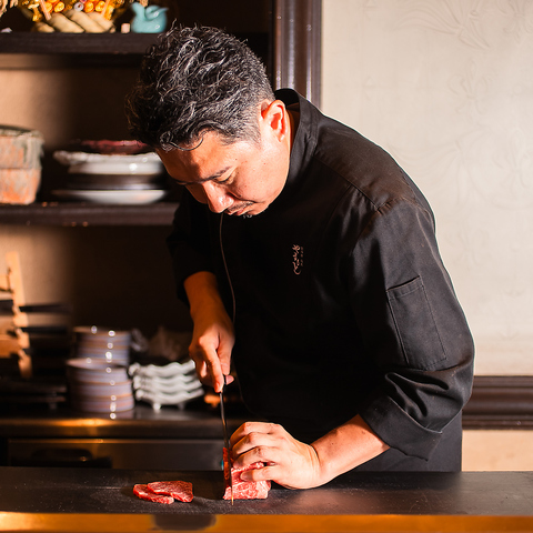求める基準を満たす上質な肉を、最高の状態でご提供するために、厚みや大きさ、口当たりまで細かく調整。ひとつひとつ丁寧に火を入れ、素材本来の旨みを引き出します。口に運んだ瞬間、広がるのは全身に沁み渡るような幸福感。部位ごとの特性を熟知したスタッフが、目の前でベストな火入れで仕上げ、お届けします。