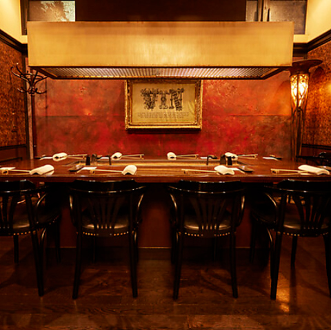 広々としたテーブル席は、6名様用が1卓、4名様用が4卓と、人数に応じて柔軟にご利用いただけます。片側ソファー席は最大10名様まで対応可能で、グループでのお食事にも最適です。2名様用のカウンター席がは、臨場感を間近に楽しめる特等席です。お一人様のご利用からデート、ご会食まで。多彩なシーンに寄り添う空間が魅力です。