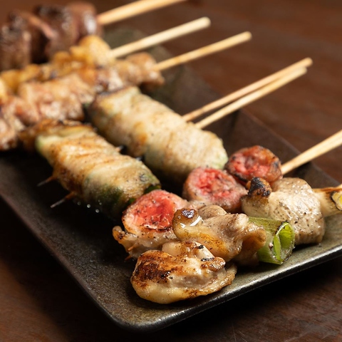 新鮮鶏を毎日手串でご提供!一本一本炭火でじっくり丁寧に焼き上げます…。説明の必要ナシのウマさ!お得なおまかせ串盛3本円530円(税込)/6本1050円(税込)/10本1700円(税込)もございます♪