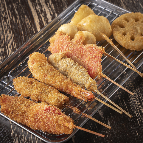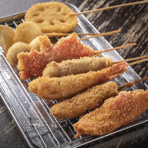 肉や野菜、魚介類など種類豊富な『串カツ』をご用意!季節のおすすめ串カツや、当店でしか味わえない変わり種のオリジナル串カツもラインナップ。通常のソースのほか、自家製タルタル・バジル・メープルの3種のサービスソースもご用意しており、色々な組み合わせをお楽しみいただけます♪