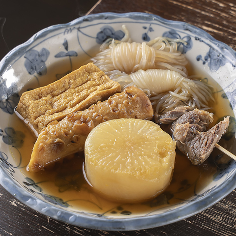 店主こだわりの、出汁がしっかりと染み込んだあつあつの『おでん』は、冬場はもちろん夏にだって美味しく食べられる当店の人気メニュー!また大阪名物の『どて焼き』は、牛すじ肉をじっくりと煮込み白味噌や具材の味を染み込ませた、お酒が止まらなくなる逸品。ぜひ一度ご賞味ください!
