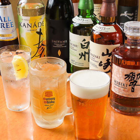 白州・響・山崎など銘酒ウイスキーをはじめ、豊富なお酒と厳選肉で大人時間を堪能。