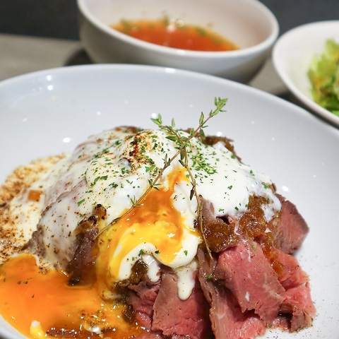 当店人気No.1のランチメニュー!炙りチーズのローストビーフ!牧草を食べて育った牧草牛を使用。とても柔らかく、脂肪が少なく栄養価の高いお肉です!またチーズとの相性も抜群です!ぜひご堪能ください!