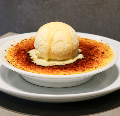 当店人気No.1のデザートメニュー!クレーム・ブリュレ!サトウキビ100%の赤砂糖を使用して表面をキャラメリゼ。そこにバニラアイスを乗せた贅沢な一品。